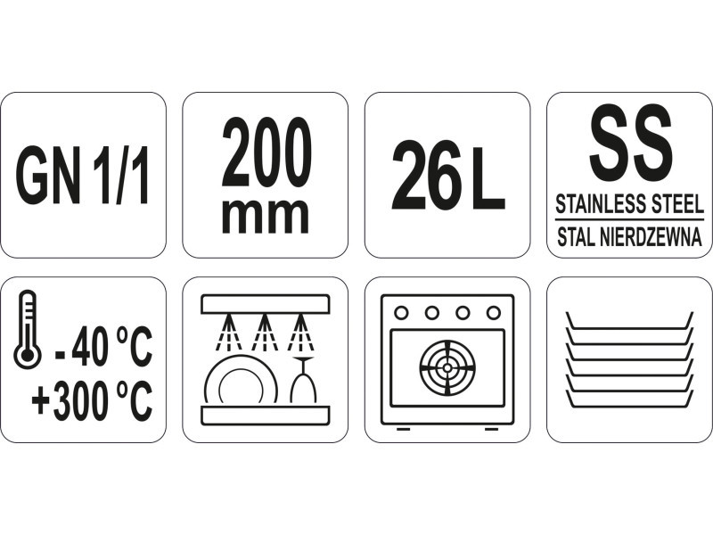 YATO GASTRO Inox betét 200 mm GN 1/1