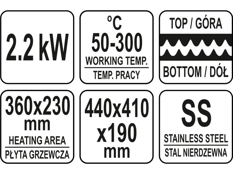 YATO GASTRO Kontaktgrill 440 mm 2200 W bordázott sütőlap