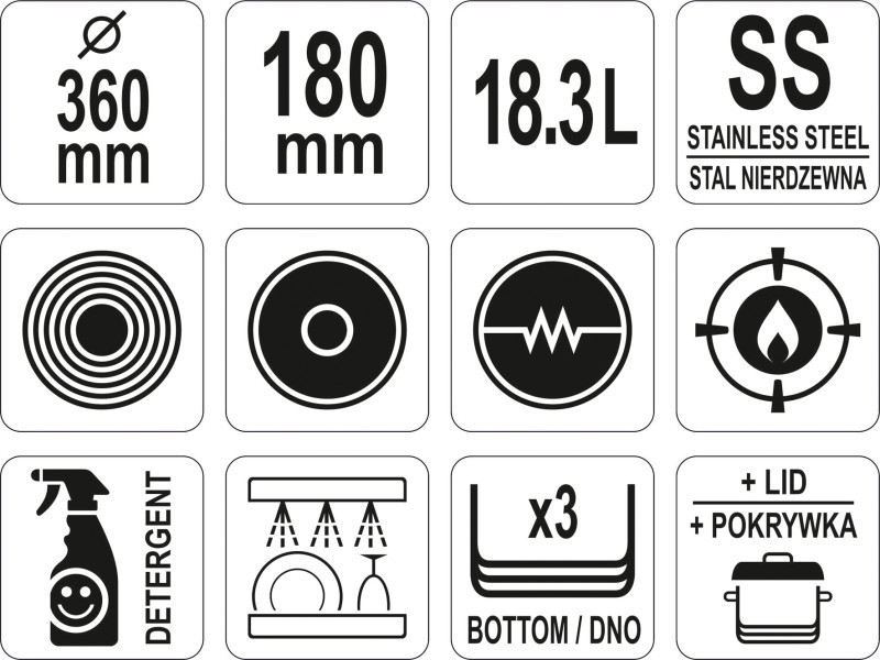 YATO GASTRO Lábas fedővel 18,3 liter 360 x 180 mm inox