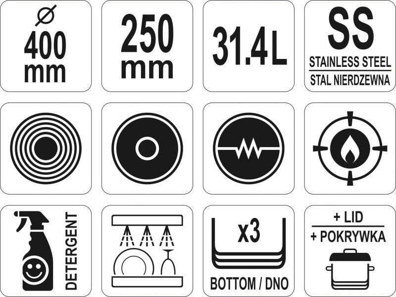 YATO GASTRO Lábas fedővel 31,4 liter 400 x 250 mm inox