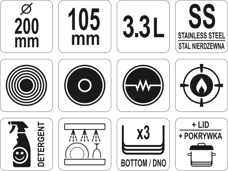 YATO GASTRO Lábas fedővel 3,3 liter 200 x 105 mm inox