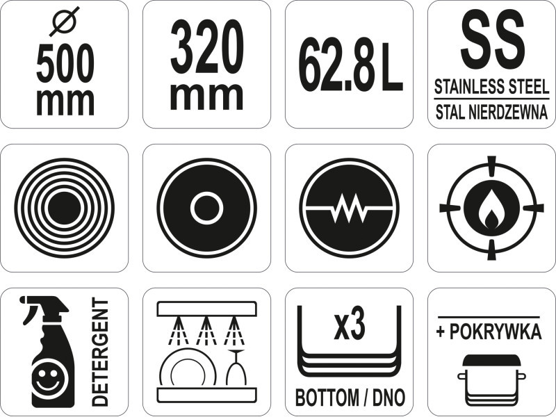 YATO GASTRO Lábas fedővel 62,8 liter 500 x 320 mm inox