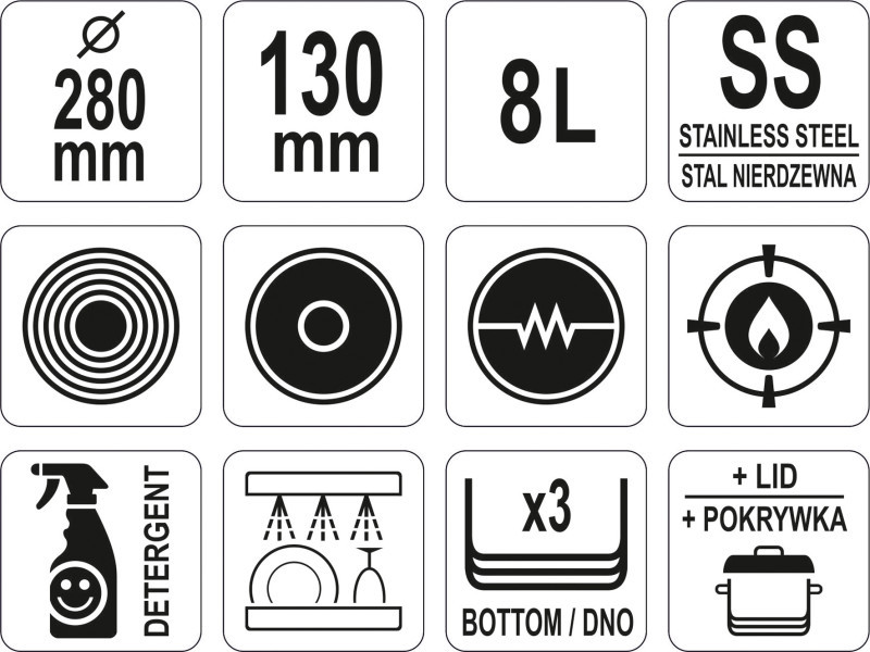 YATO GASTRO Nyeles lábas fedővel 8 liter 280 mm inox
