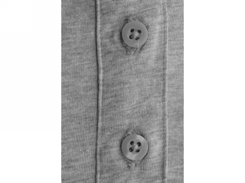 A SOFT sorozatból származó pólóing 200 g/m2 súlyú, kiváló minőségű pamut trikóból készült. A hagyományos pólószövet viszkózzal a szürke melange színhatásért, valamint a nem kúszó bordás kötésből készült gallér és mandzsetta a kiváló minőségű pólók kényelmét a pólók dekoratív hangsúlyaival ötvözi. Az anyagkötések és a szegélyek túlnyomóan tartós és megbízható overlock varrással készültek.
