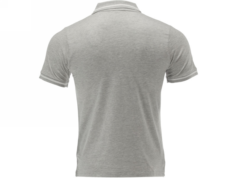 A SOFT sorozatból származó pólóing 200 g/m2 súlyú, kiváló minőségű pamut trikóból készült. A hagyományos pólószövet viszkózzal a szürke melange színhatásért, valamint a nem kúszó bordás kötésből készült gallér és mandzsetta a kiváló minőségű pólók kényelmét a pólók dekoratív hangsúlyaival ötvözi. Az anyagkötések és a szegélyek túlnyomóan tartós és megbízható overlock varrással készültek.