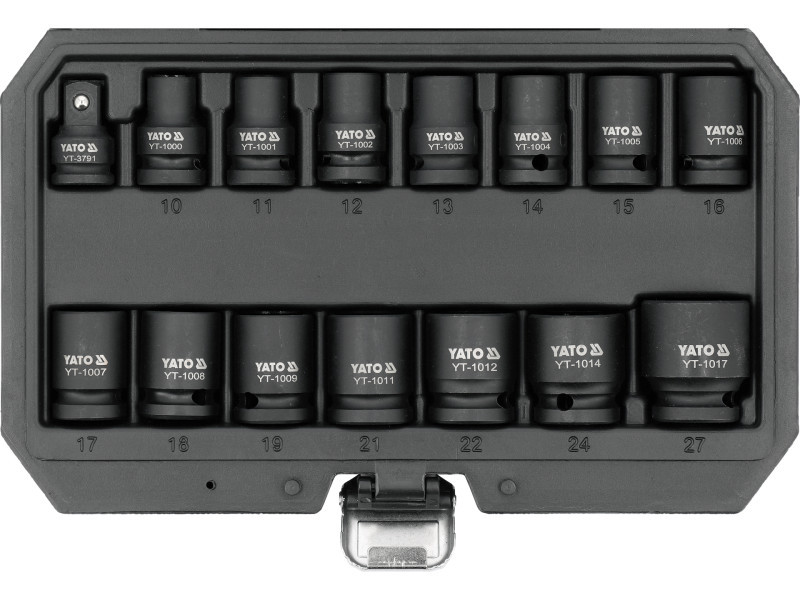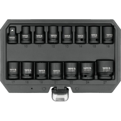 YATO Gépi dugókulcs készlet 1/2" 15 részes 10-27 mm 3/8" x 1/2" adapterrel