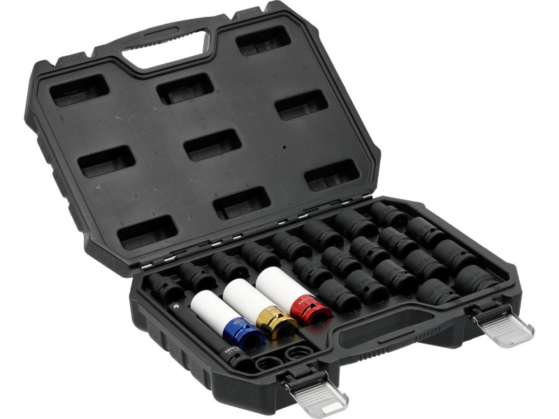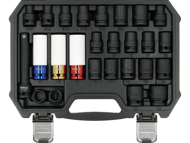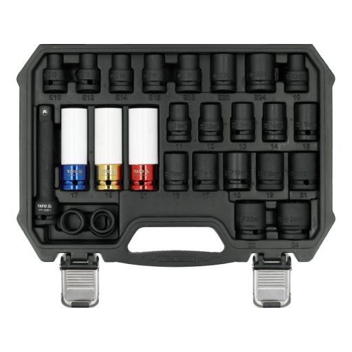 - 13 db 1/2" ütődugó: 10, 11, 12, 13, 14, 15, 16, 17, 18, 19, 21, 22, 24 mm