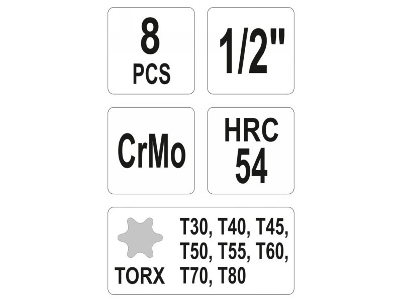YATO Gépi hosszú bit dugókulcs készlet 8 részes Torx 1/2" T30-T80 CrMo