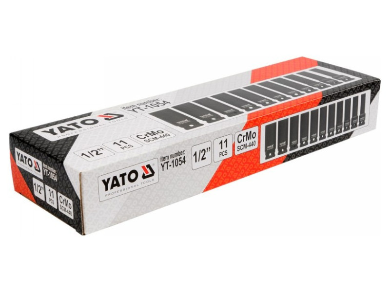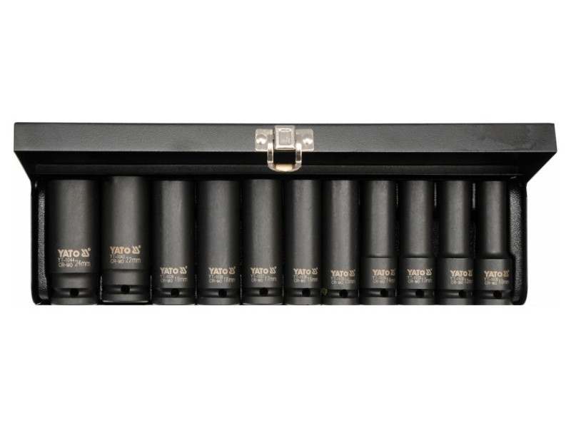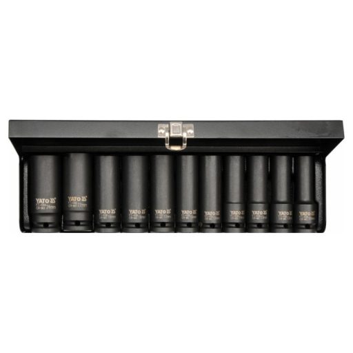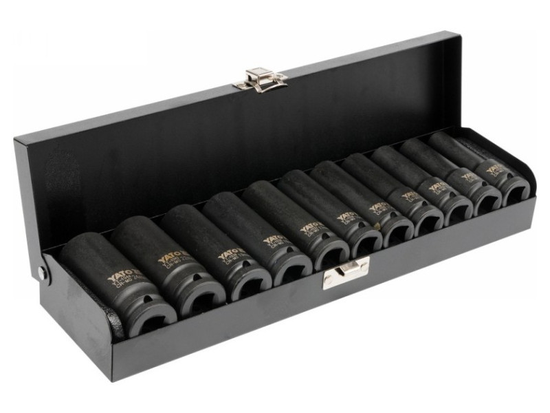 Yato hosszú ütvecsavaros dugókulcsok - 11 darabos dugókulcskészlet. Speciális ütvecsavaros dugókulcsok, nagyon nagy terhelés alatt működő pneumatikus eszközökkel dolgoznak.