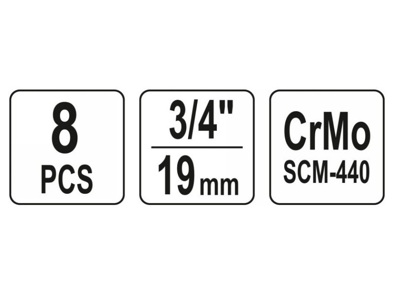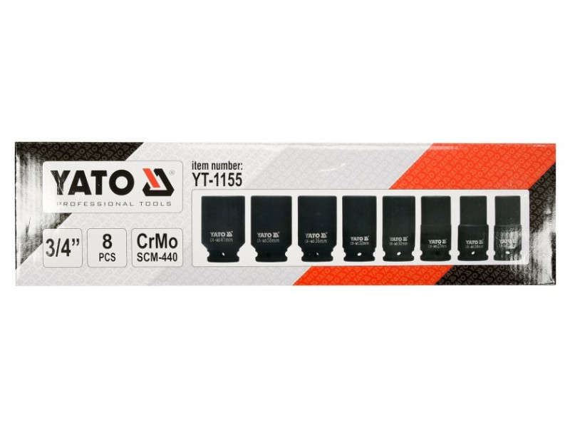YATO Gépi hosszú dugókulcs készlet 8 részes 3/4" 22-41 mm CrMo