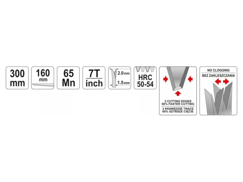 • Különleges háromoldalú profilú fogak az agresszív vágáshoz mindkét irányban