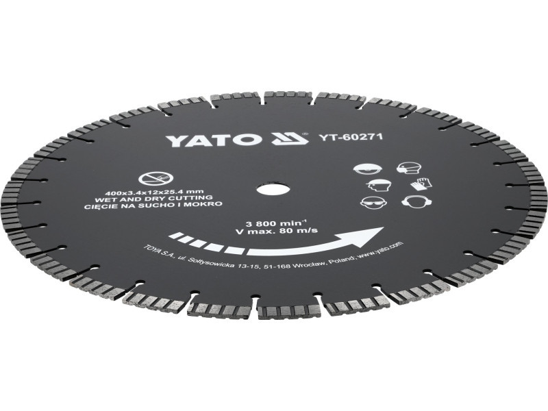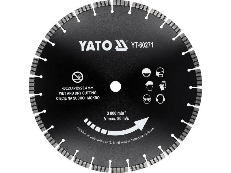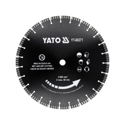 Diamant vágókorong száraz és nedves keményített és fémes betonon, téglán, grániton, kőfalakon, kőben, homokkőben való munkához.