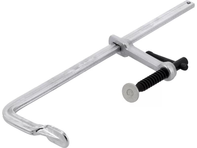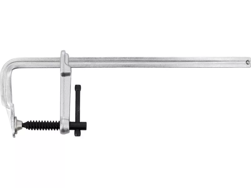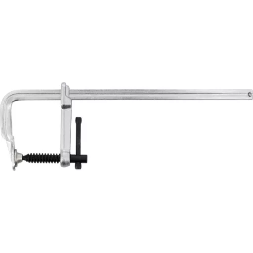 Teljesen acélból kovácsolt. A sín egy darabból van kovácsolva. Az acél csapszeggel ellátott szorítócsavar lehetővé teszi, hogy a szorítót hegesztési munkákhoz is lehessen használni. Ács- vagy hegesztési munkákhoz való anyagszorításhoz.