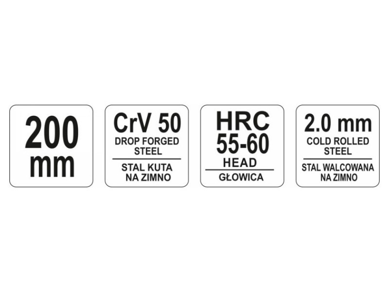 200 mm hosszú, indukciósan edzett fejjel ellátott fogó. Szerviz- és hobbiműhelyekben végzett építő- és segédmunkákhoz tervezték.