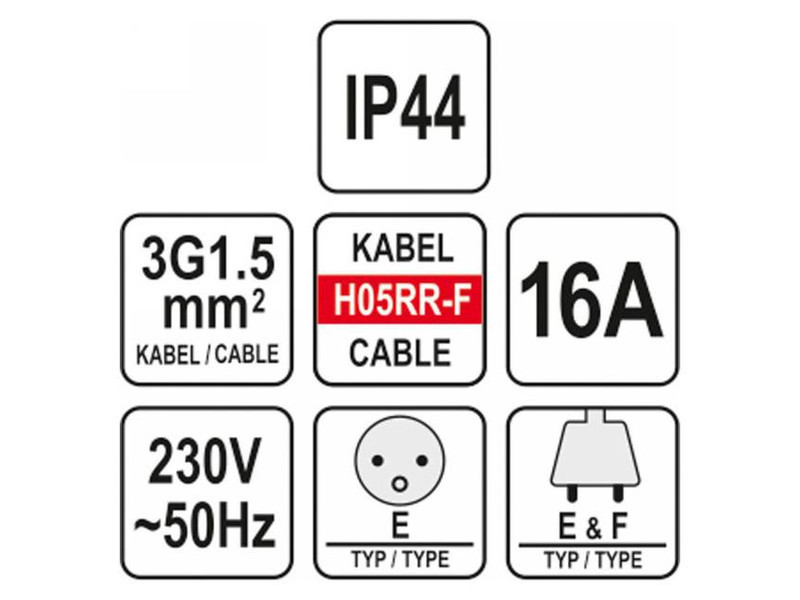 YATO Hosszabbító lengőkábel gumiszigetelt 20 m 3 x 1,5 mm2