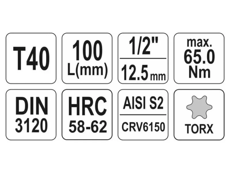 Professzionális Torx tengelykulcs, 1/2" hüvelyméret, T40-es szárméret.