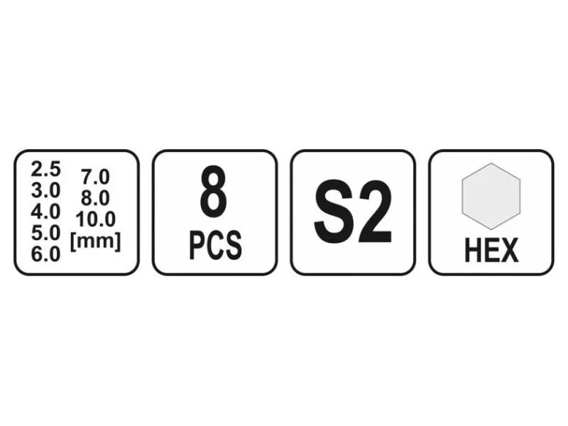 YATO Imbusz T-kulcs készlet 8 részes 2,5-10 mm S2