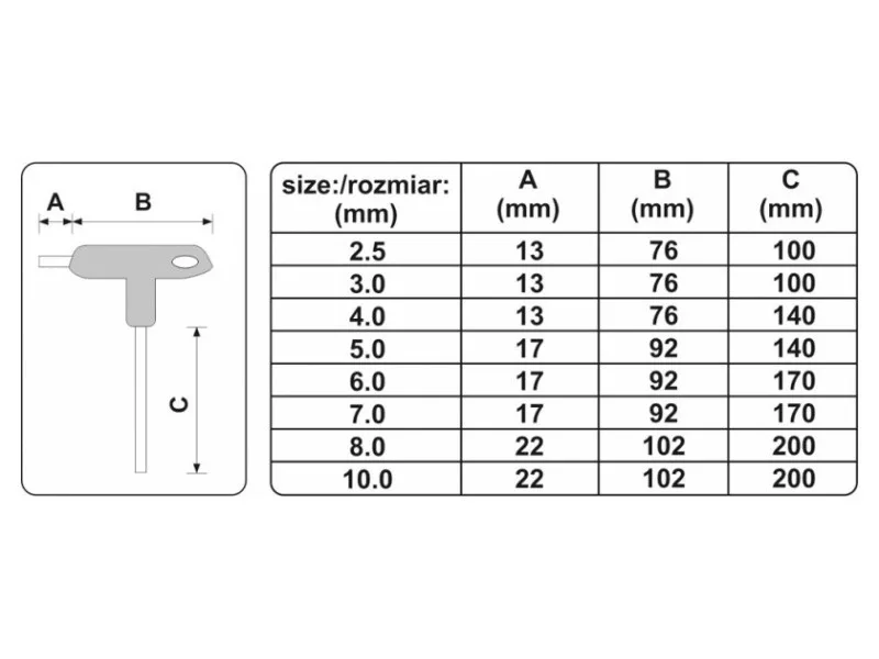 • méretek 2,5 mm, 3 mm, 4 mm, 5 mm, 6 mm, 7 mm, 8 mm 10 mm