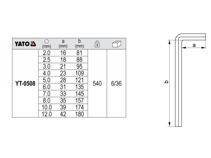 YATO Imbuszkulcs készlet 10 részes 2,0-12 mm CrV