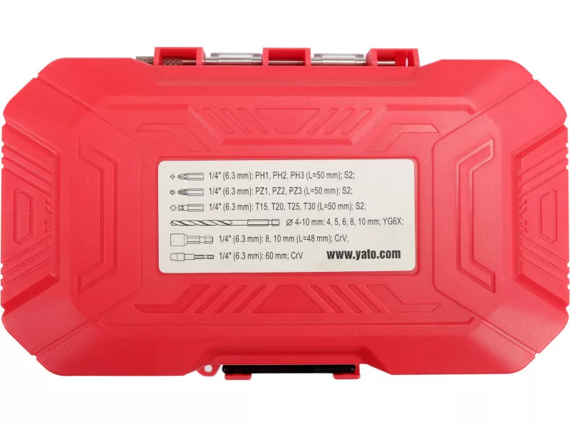- 10 db 50 mm-es bit: Pozidriv: Torx: T15, T20, T25, T30, Phillips: PH1, PH2, PH3), AISI S2 rozsdamentes acélból készültek