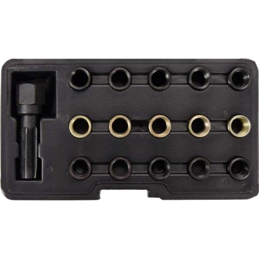 Professzionális gyújtógyertya menetjavító készlet, amely a következőkből áll: