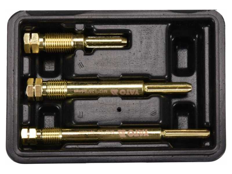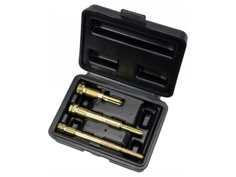 Három darabból álló professzionális vésőkészlet az izzítógyertya foglalatok tisztításához, amelyet az új izzítógyertyák hengerfejekbe történő beszerelése előtt használnak.