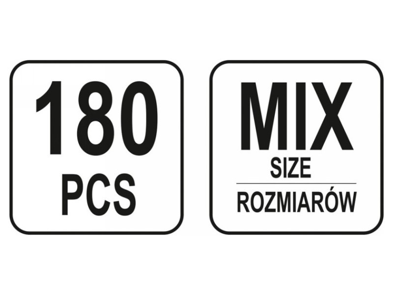 A gumitömlő készlet 180 darabot tartalmaz különböző méretekben. Az egész készlet egy praktikus válogató dobozban van elhelyezve.