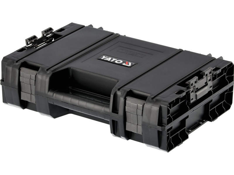 Legfelül egy tágas szervező van, alatta egy elektromos szerszámos doboz, amely két oldalról védőhabbal van ellátva. Egy másik elem egy nagyméretű, tágas doboz a legalsó részen egy kerekeken guruló rendszerdobozzal.