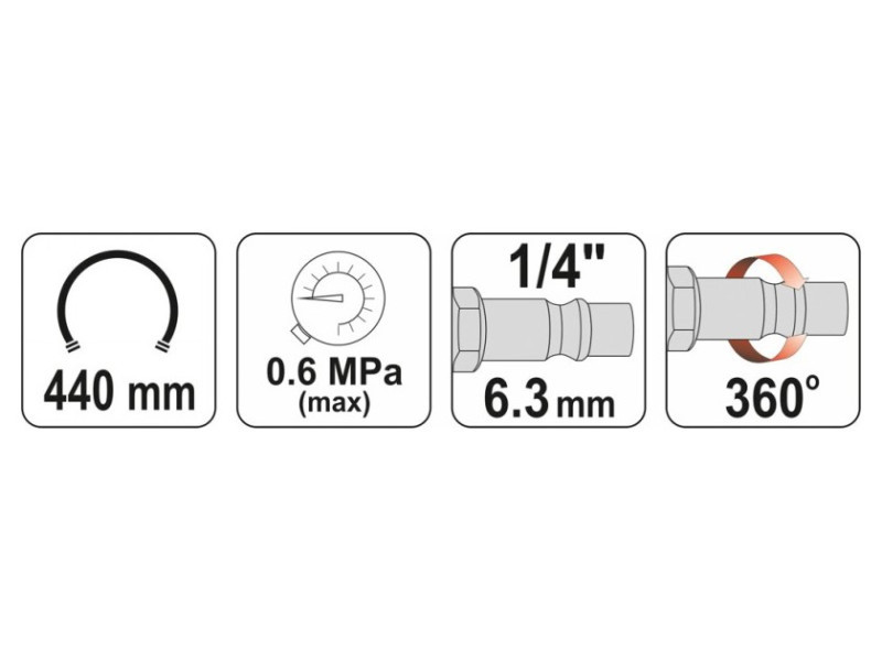 - az 1/4"-os csatlakozó forgó testre van szerelve - ez megakadályozza a pneumatikus tömlők összegabalyodását.