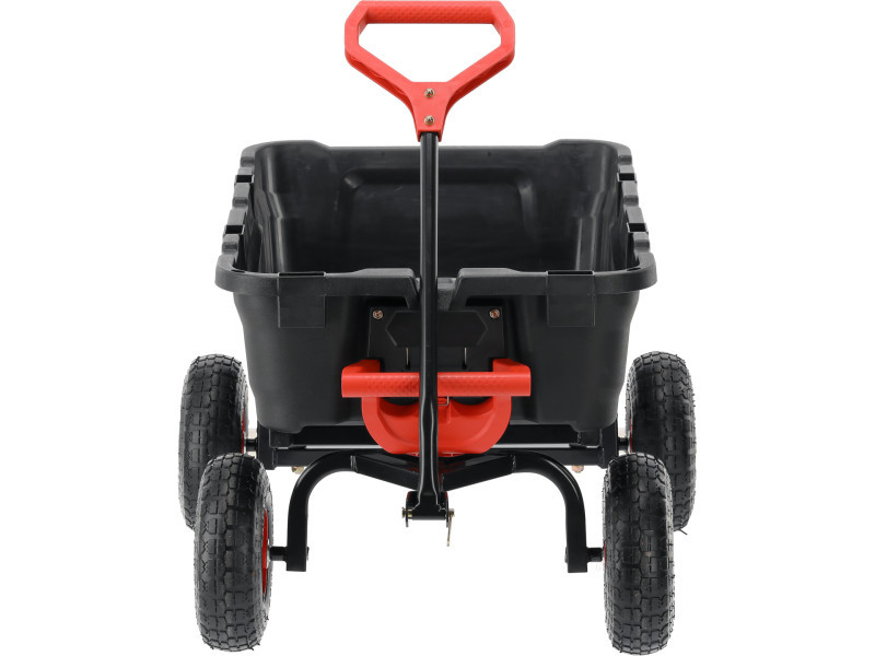 Sokoldalú XL kocsi, amelyet a különféle háztartási és kerti munkák javítására terveztek. A billenő funkció megkönnyíti az olyan anyagok, mint a talaj, homok, fa vagy kerti hulladék kirakodását, csökkentve a felhasználó erőfeszítéseit. A nagyméretű, 10"-os futófelülettel ellátott pumpás kerekek stabilitást és könnyű mozgást biztosítanak az egyenetlen terepen, míg a forgatható első tengely növeli a manőverezőképességet.