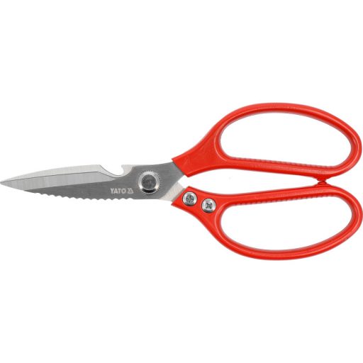 Az erős alumíniumból készült profilozott fogantyúk biztos és kényelmes fogást biztosítanak, míg a polírozott 3Cr13 rozsdamentes acél pengék élesek, tartósak és ellenállóak a korrózióval szemben hosszú ideig. Az alacsony súly és masszív kialakítás miatt az ollók kényelmesek és megbízhatóak a mindennapi, intenzív használat során.