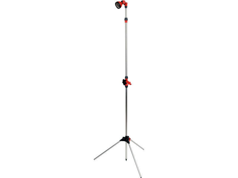 Állítható magasságú funkcionális teleszkópos kerti zuhany 175 és 229 cm között, stabil állvánnyal és felső permetezőfejjel felszerelve. Kiválóan alkalmas hűsítésre a forró napokon vagy a saunázás után, test és haj mosására, valamint kerti munka utáni eszközök öblítésére. Könnyű és hordozható, ugyanakkor masszív szerkezet, magas minőségű anyagokból és fémekből készült, ellenáll a korróziónak.