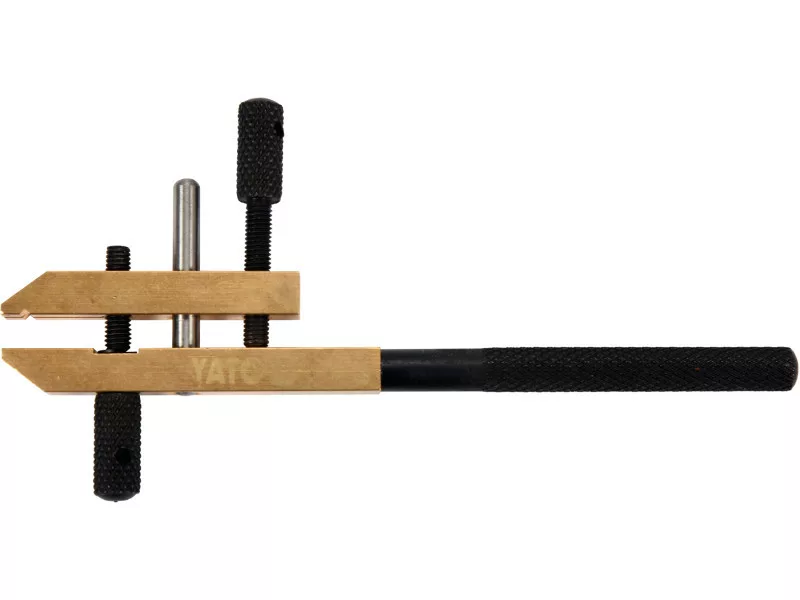 A feszítőbilincs sárgaréz pofákkal rendelkezik, két állítócsavarral és egy vezetővel a pontos pozícionáláshoz.