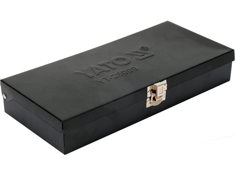 Yato márkájú 168 mm hosszú ütvecsavarhúzó 31. feketére festett bitekkel. A csavarhúzó tartós CrV acélból készült, amely ellenáll a kalapálás közbeni deformációnak, míg a bitek kiváló minőségű S2 acélból készültek.