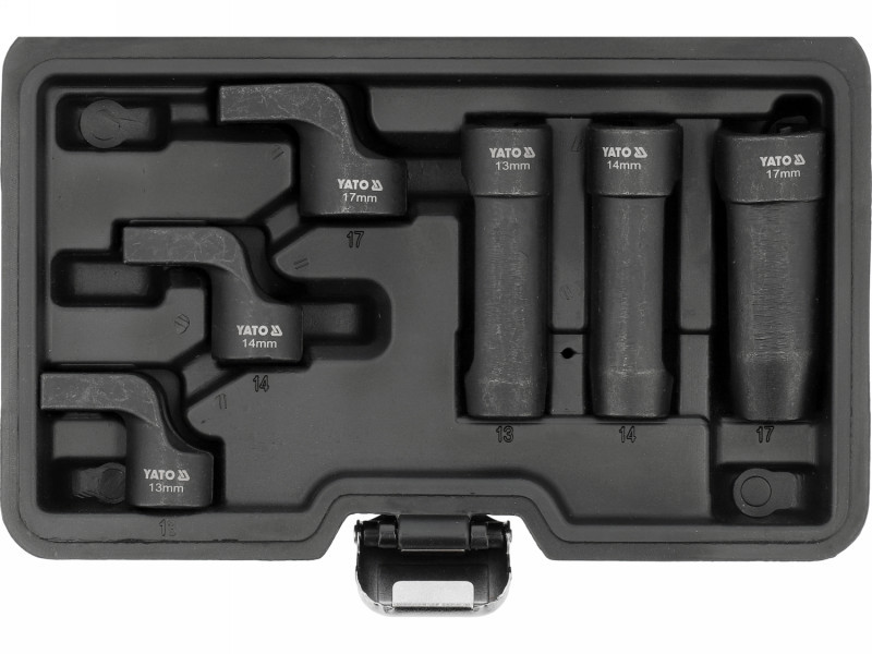 Egyedi csatlakozókészlet, amelyet a kipufogógáz hőmérsékletérzékelőinek professzionális kezelésére terveztek. A szerszámokat olyan környezetben való munkához tervezték, ahol a motorháztető helye korlátozott, valamint a magas hőmérsékletnek és korróziónak kitett elemeknél. A készlet praktikus megoldást jelent az autószerelő műhelyek és kipufogórendszerekkel foglalkozó műhelyek számára. A megfontolt kialakítás és a megfelelő méretek kiválasztása könnyebbé és biztonságosabbá teszi a kipufogógáz hőmérsékletérzékelők széles körű kezelését a következő járműtípusokban: