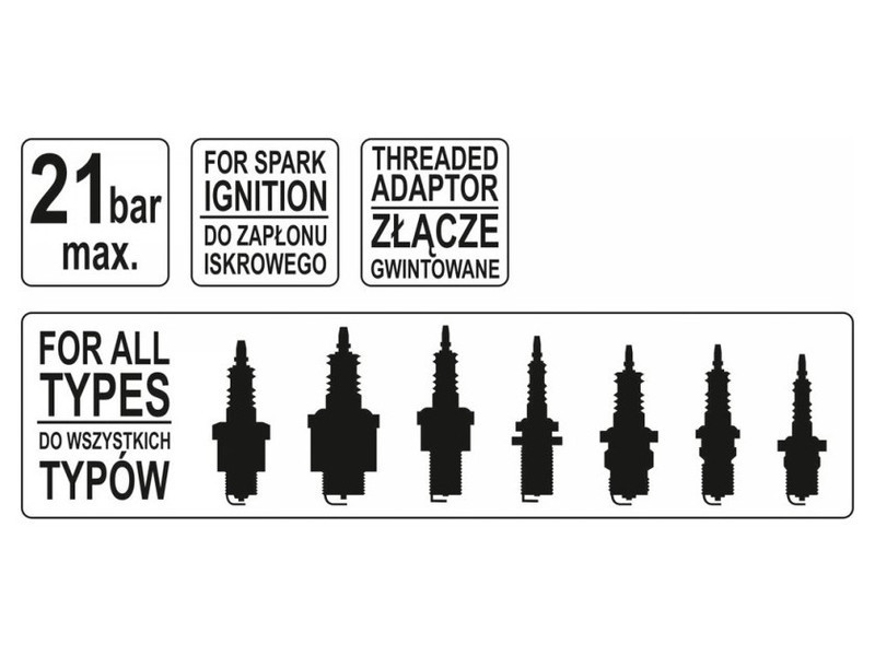 | Alkalmazás | kompressziós nyomás mérésére, szikragyújtáshoz, minden típusú motorhoz |