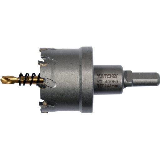 ÁTMÉRŐ: 44MM, VÁGÁSI MÉLYSÉG: 25MM, TELJES HOSSZ: 103MM, KEMÉNYFÉM YG10X, TEST ANYAGA: SZÉNACÉL, FÚRÓSZÁR ANYAGA: HSS4341 ÓN, MÉRET: 6MM, HEX-10MM SZÁR, 1DB. IMBUSZKULCS, 1DB. KIDOBÓ RUGÓ, ALKALMAZÁSOK: SZERKEZETI ACÉL (HEA, HEB, ELEKTROMOS KAPCSOLÓBERENDEZÉSEK, GÁZDOBOZOK), ROZSDAMENTES ACÉL, MŰANYAGOK (ABS, PE, PVC, ÜVEGSZÁL ERŐSÍTÉSŰ IS) .