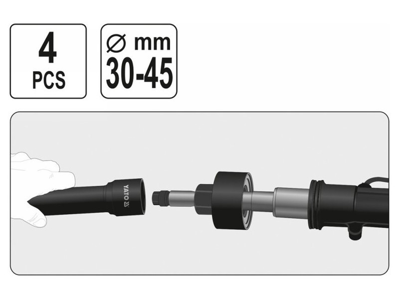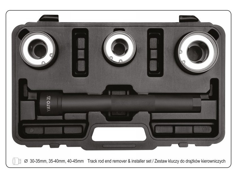 Professzionális 4 darabos kormányrúd szervizkészlet. Tartalmazza a fogantyút és a három cserélhető fejet. Munkatartományok: mm - 35 mm, 35 mm - 40 mm, 40 mm - 45 mm.