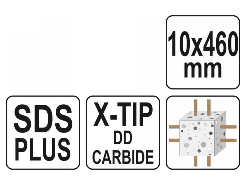 YATO Kőzetfúró 10 x 460/375 mm négyélű SDS-Plus