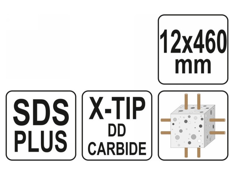 YATO Kőzetfúró 12 x 460/375 mm négyélű SDS-Plus