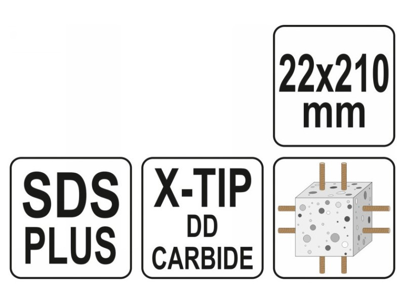 YATO Kőzetfúró 22 x 210/150 mm négyélű SDS-Plus