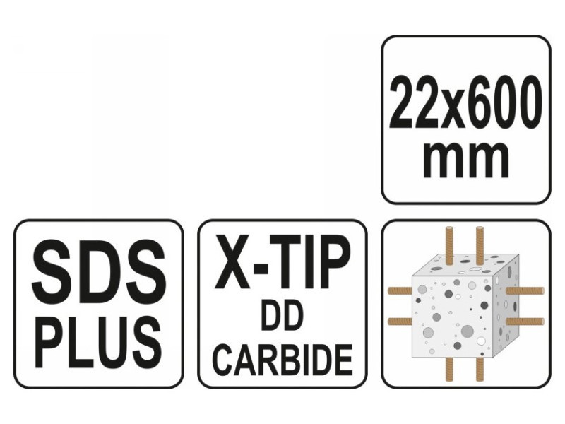 YATO Kőzetfúró 22 x 600/525 mm négyélű SDS-Plus
