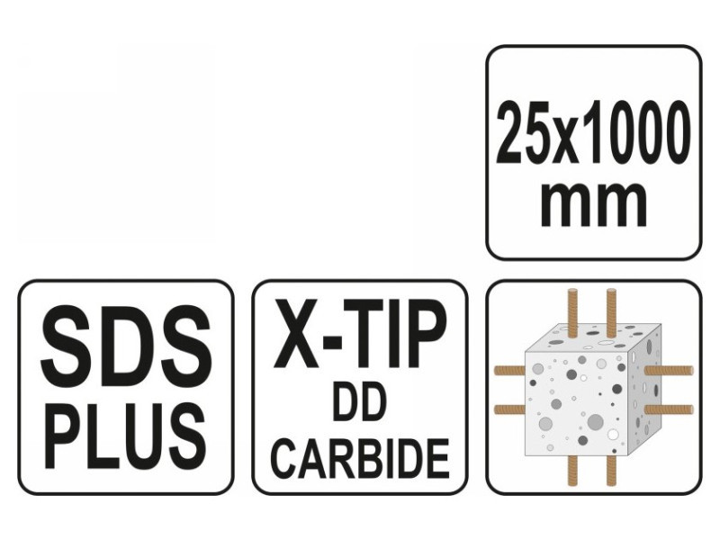 YATO Kőzetfúró 25 x 1000/930 mm négyélű SDS-Plus
