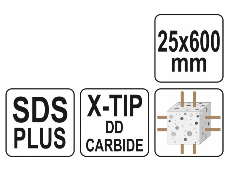 YATO Kőzetfúró 25 x 600/525 mm négyélű SDS-Plus