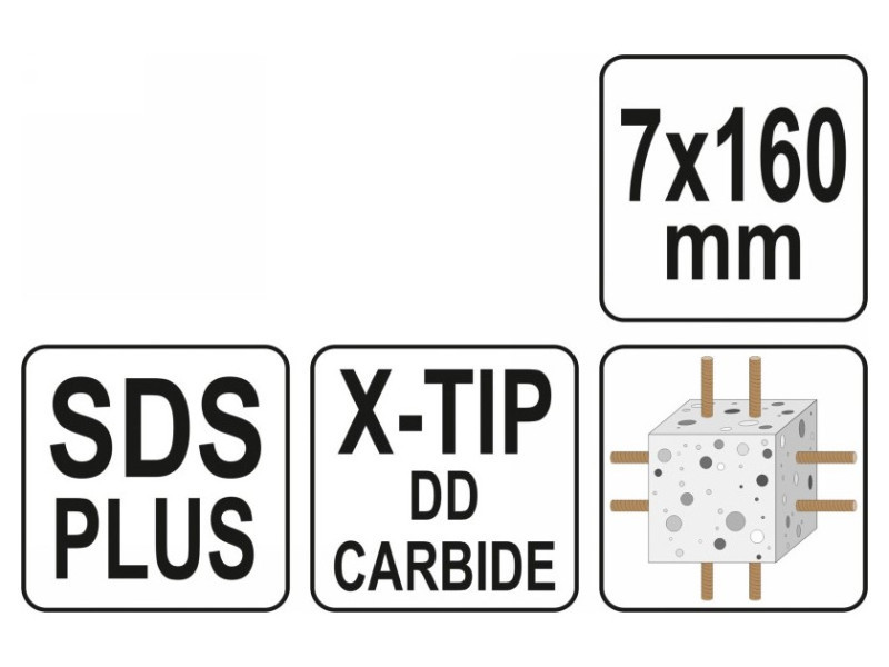 YATO Kőzetfúró 7 x 160/100 mm négyélű SDS-Plus