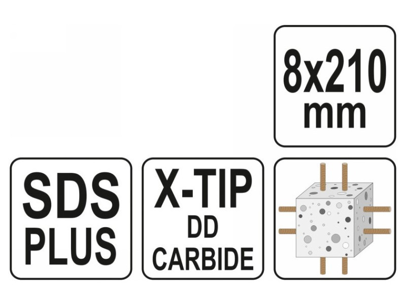 YATO Kőzetfúró 8,0 x 210/150 mm négyélű SDS-Plus