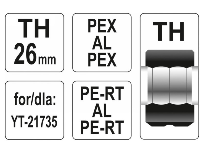Pótmátrix az YT-21735 préshez. TH típusú csatlakozók PEX csövek krimpelésére szolgál.