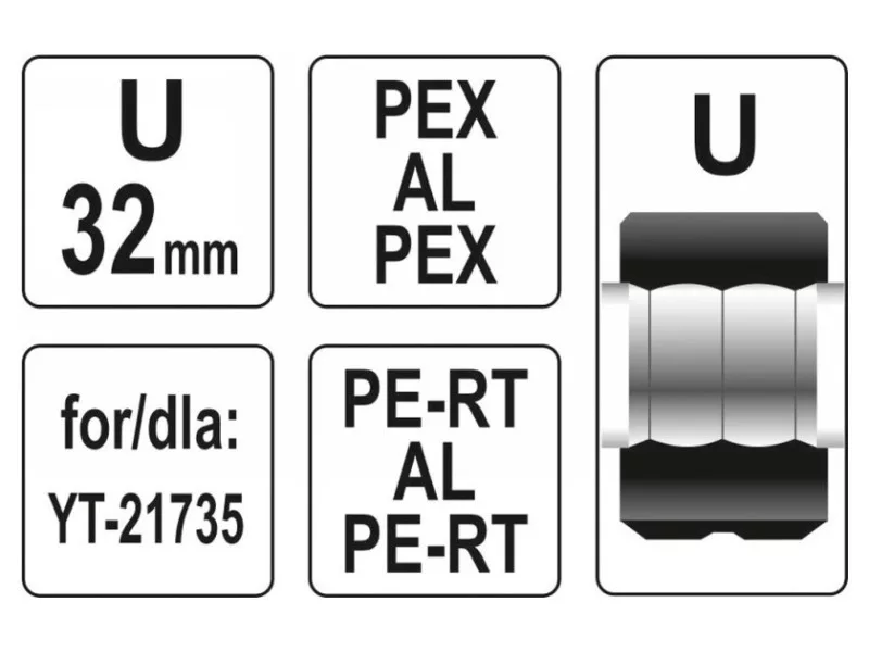 Pótmátrix az YT-21735 préshez. PEX csövek U típusú csatlakozóinak krimpelésére szolgál.