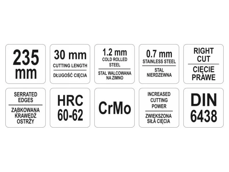 - 1,2 mm vastagságú acéllemezek és 0,7 mm vastagságú rozsdamentes acélok vágásához.