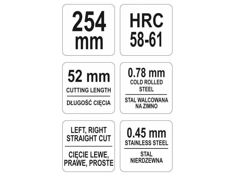 Angol típusú, kovácsolt olló, lemezvágáshoz / egyenes vágás, balra és jobbra.